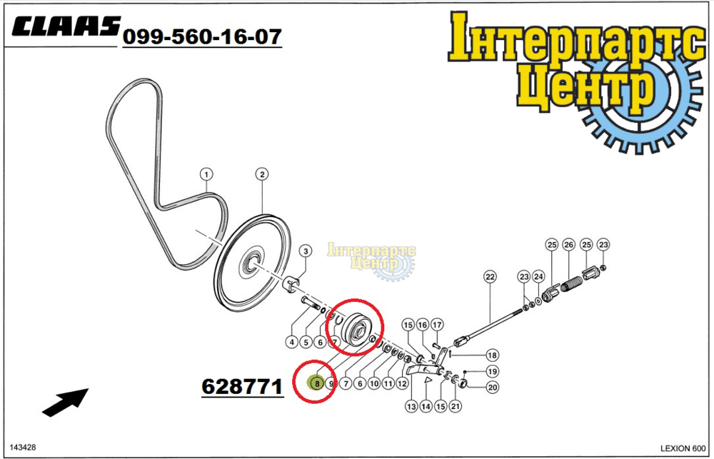 Ролик натяжний (не в зборі) 628771, 628771.0, 000628771, CLAAS