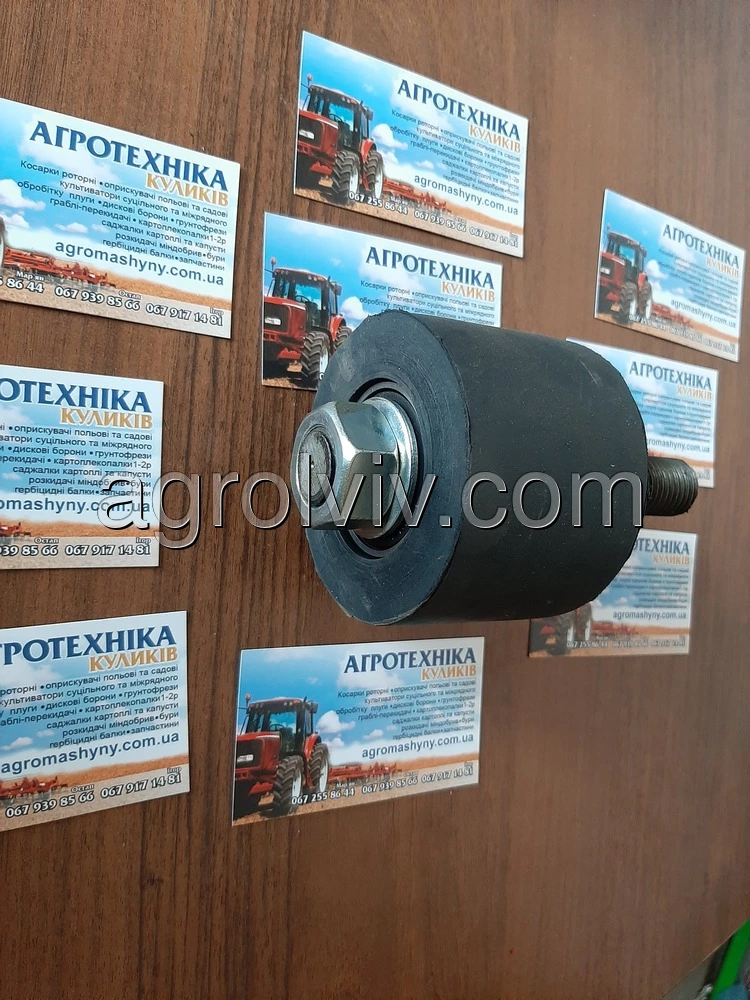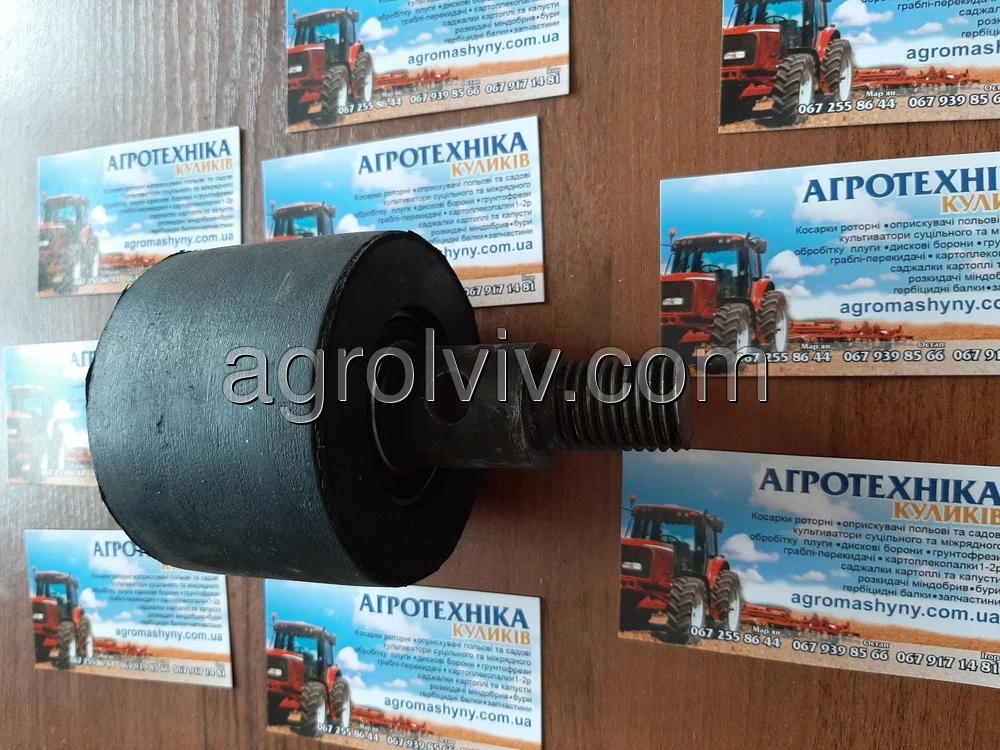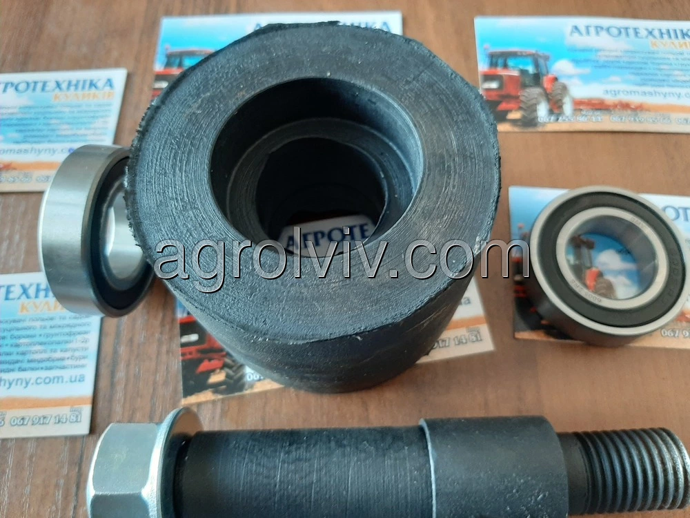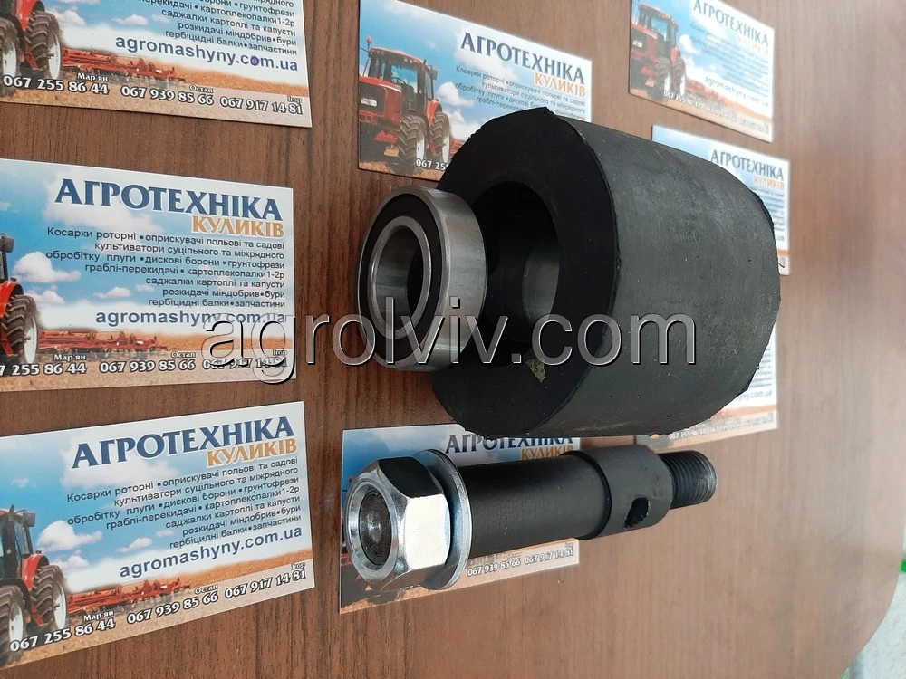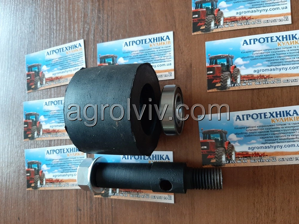 Ролік резиновий в зборі однорядної навісної копачки. ZK2-80. Ролік резиновий використовується на однорядних навісних картоплекопачках польського та Українського виробництва. Ролік нового зразка для однорядних транспортерних навісних картоплекопачок. Підходить для копачок від виробника Wirax, Bomet та інших копачок польського та Українського виробництва. В середині роліка місьтяться два підшипники які мають упор до резини. На вісь накручується гайка яка утримує підшипники та унеможливлює сповзання підшипників та резини. При встановлення на копачку переробляти нічого не треба. Діаметри отворів та віськи співпадають. Ширина роліка відповідає ширині резини на транспортері копачки.