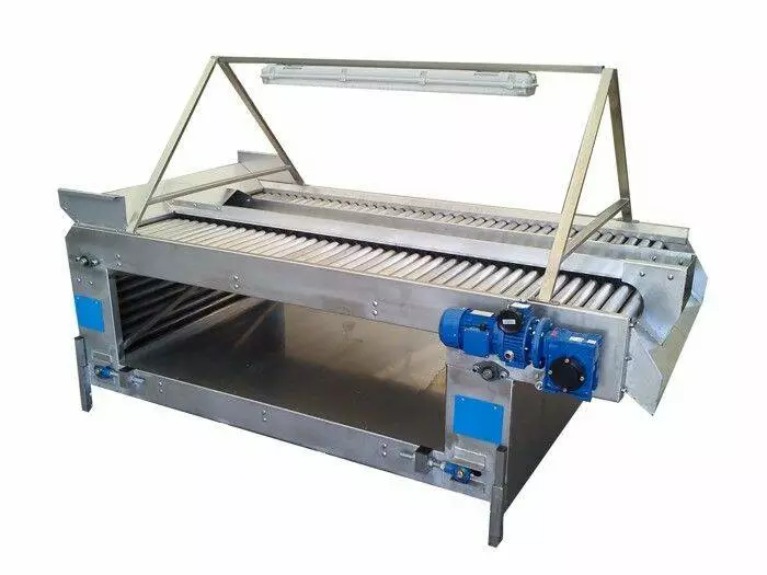 Ролики забезпечують переміщення овочів та одночасне їх обертання, що забезпечує максимальний огляд коренеплодів з усіх боків.