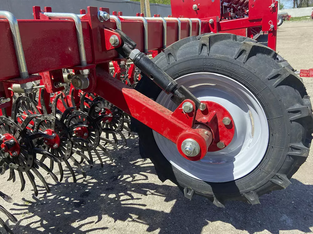 • Рама оснащена опорними колесами з гвинтом для регулювання глибини заробки борони;