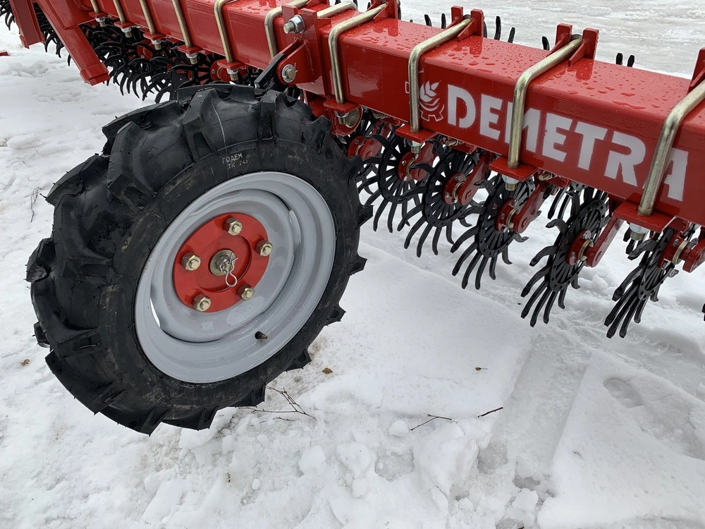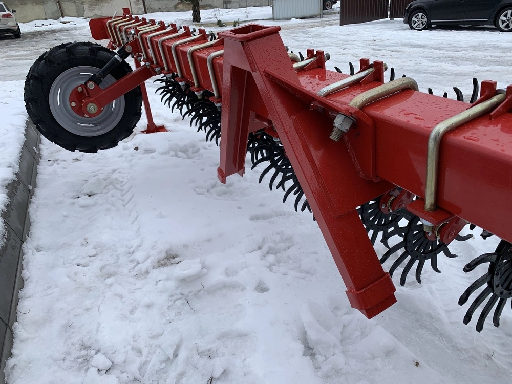 • На рамі передбачені опорні колеса з гвинтом регулювання глибини закладення борони;