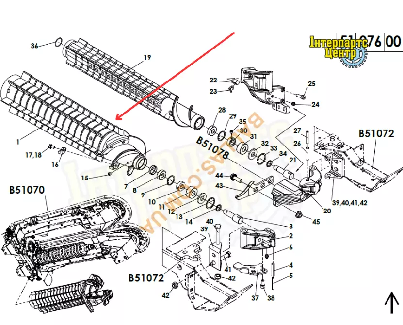 Ротор (валець) великий у зборі з підшипниками різального апарату кукурудзяної жатки Geringhoff.