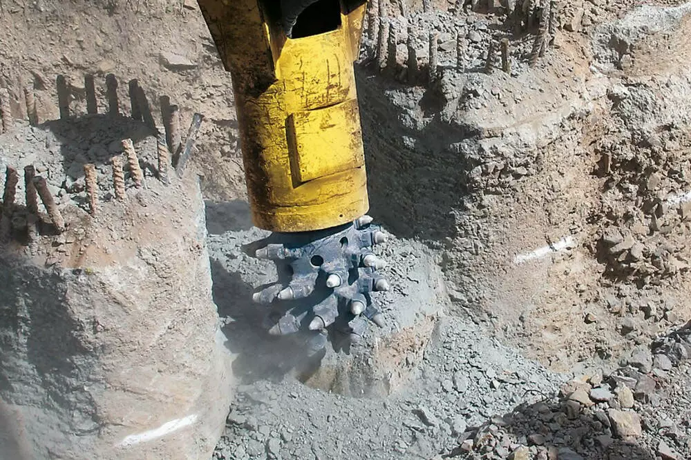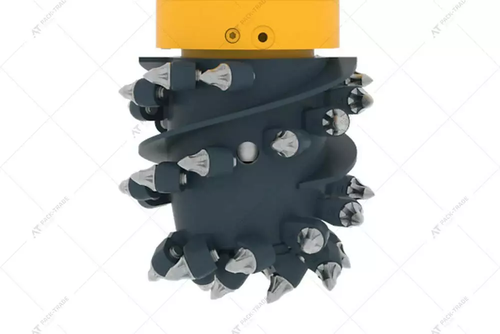 Роторна барабанна фреза Epiroc ER2000L на екскаватор. Вага машини-носія — 35-50 т. Роторні фрези поздовжньої конструкції серії ER-L призначені для розроблення вузьких траншей, демонтажу оголовків паль і очищення канав.
