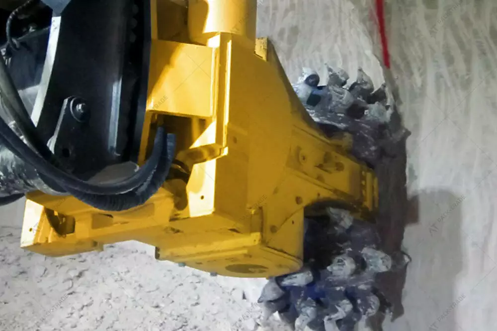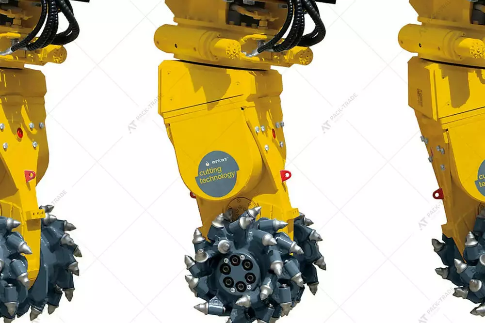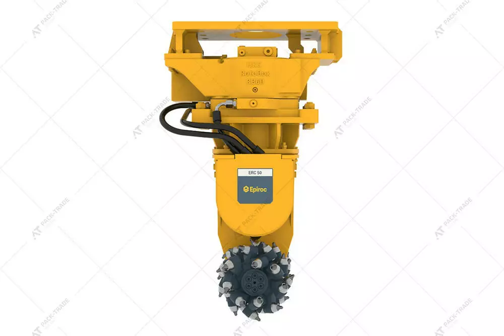 Роторна барабанна фреза з гідравлічним обертанням Epiroc ERC50 на екскаватор. Вага машини-носія — 1-3 т. Вбудований гідравлічний поворотний механізм підвищує точність і продуктивність роторної фрези під час виконання складних завдань.