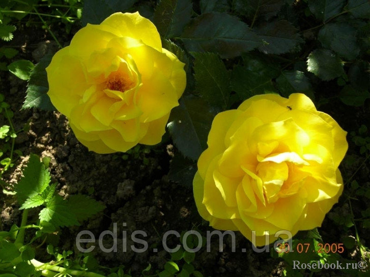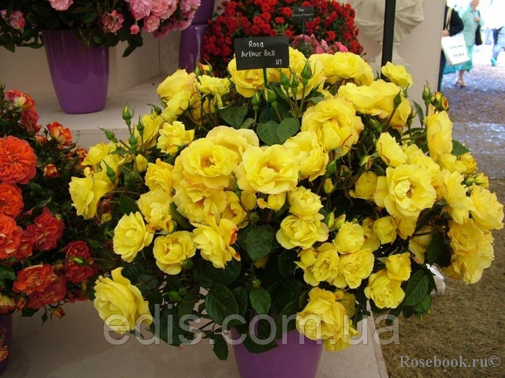 Роза Артур Белл (Arthur Bell) - жизнерадостный "монстрик" среди флорибунд Цветки очень крупные, полумахровые, из 20-ти лепестков, в бутоне - очень яркого, красивого лимонно-желтого цвета. К сожалению, в процессе роспуска выгорают до сливочно-желтых, но этот недостаток сполна компенсируется другими преимуществами. Конечно, существуют более устойчивые к солнцу флорибунды, но этот сорт покоряет своим восхитительным ароматом, который будут слышать все ваши соседи, - редкая черта для флорибунд. А также покоряет очень раннее и непрерывное до зимы цветение Артура Белла. У меня этот сорт всегда зацветает самым первым, а отцветает - последним. Не раз случалось удивительное зрелище - выглядываешь утром в ноябре в окно, всё белым-бело, ночью припорошил первый снег, а посреди двора на белом фоне ярко-жёлтые цветы. Без щорічної обрізки кущ здатний досягти у висоту 150 см. і навіть більше. Листя велика, глянцева. Стійкість до чорної плямистості та борошнистої роси хороша.