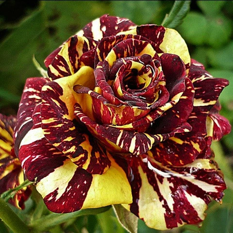 Роза чайно-гібридна Абракадабра. Це одна з найбільш незвичайних троянд коли-небудь вирощених. Цвіте дуже яскраво і приголомшливо. Весь квітка покритий численними смужками і плямами різних відтінків від легких і сильних жовтих з рожевим і фіолетовим. Опис: Квітки великі (10-12см), розташовані поодиноко або в суцвіттях, махрові, з високим центром, пелюстки загостреної форми. Аромат легкий. Листя зелене глянсова. Срезочной сорт, але може рости у відкритому грунті. Зимостійкість висока. Висота куща до 100см. Роза відрізняється винятковою привабливістю і шармом.