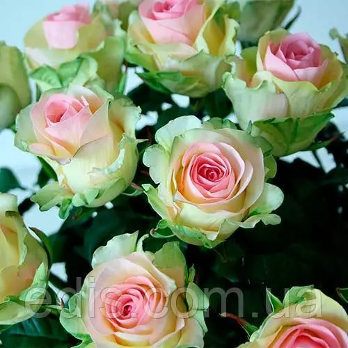 забарвлення: пастельно-рожевий ніжна серединка пелюсток переходить в світло-салатового облямівку;