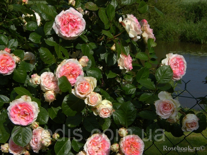 Саджанці англійської троянди Едем (Eden) Ця троянда цвіте ніжно - рожевими і густо-густо махровими квітами «теплого відтінку». Забарвлення квітів блідне від центру до країв, крайні пелюстки майже білі. Розмір квітів не дуже великий, близько 10 см, зате вони не никнуть. а гордо дивляться прямо в небо. Запах троянди слабо виражений, але вишуканий, як у старовинних троянд. Квіти зібрані в невеликі суцвіття або поодинокі. До дощу квітки стійкі, майже не спостерігається ні характерних рожевих цяточок на світлих пелюстках, ні окукливания бутонів. Повторне цвітіння рясне і тривале, до самої пізньої осені.