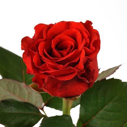 Квіти криваво-червоного (червоно-оранжевого) кольору, розташовані по одному на дуже потужних квітконосах, квітка тримається 3-4 тижні, діаметр квітки близько 10см, з часом вигоряє, але при цьому не втрачає своєї привабливості, пелюстки гофровані. Листя темно-зелене з червонуватим відтінком. Кущ компактний, рясно. Роза відрізняється оригінальною формою пелюстки. Різьблені і великі вони можуть бути і яскраво-червоного, і кривавого, і темно-оранжевого кольору. На різних стадіях цвітіння забарвлення троянди може переходити на 1-2 тони в темну або світлу сторону. Іноді від променів сонця на пелюстках утворюється темно- червоне, майже чорне напилення. Аромат слабкий.