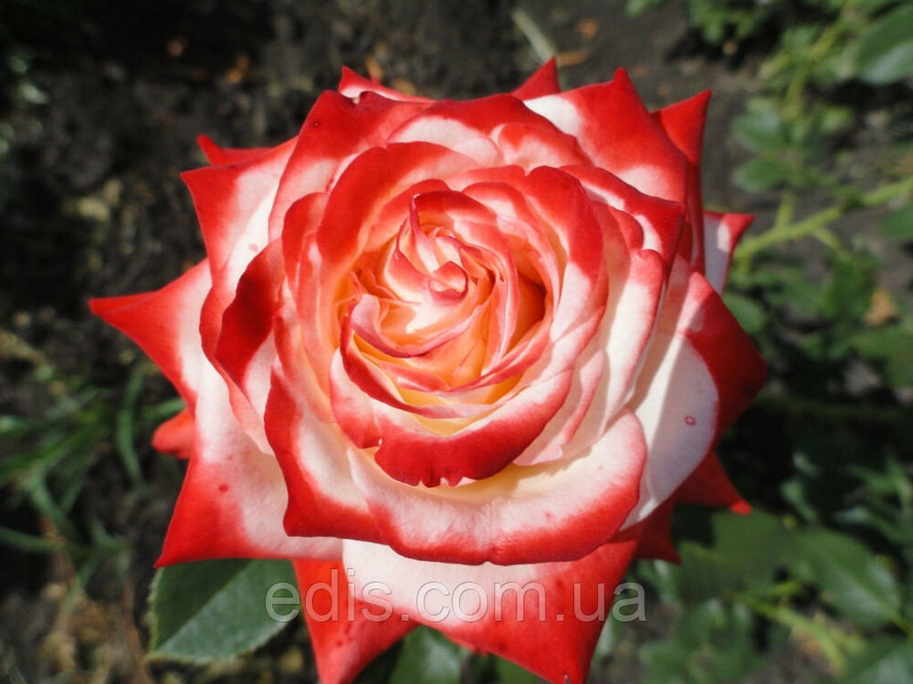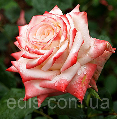 Саджанці чайно-гібридних троянд Імператриця ('Imperatrice) Елегантне поєднання білого і пунцово-червоного, пелюстки, закручені в класичний бутон, пофарбовані карміном відігнуті кінчики, ледь вловимий аромат неповторного поєднання троянди і груші, тривалий і рясне цвітіння, ніжно-зелене листя... Все це полонить багатьох розоводов. Саме цього сорту приділяється багато уваги на форумах квітникарів як на українських, так і на англомовних. Вражають великі махрові квіти діаметром до 13 см, захоплює поєднання відтінків червоного в період цвітіння, вражає вроджена благородність сорту. Спочатку бутони виглядають малиновими, але по мірі розпускання квітки стають швидше білими. Причому до цього випадку важко застосувати термін «вигорають», так як зовнішній вигляд квітки в цьому випадку стає ще більш елегантним і ніжним. Кущі в середньому висотою 110-120см та шириною близько 80 см, мають високі декоративні якості