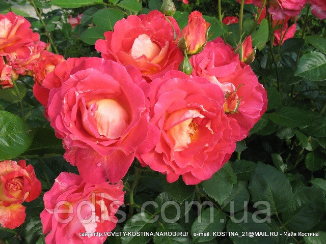 Цей сорт цілком виправдовує свою назву, віртуозно міняючи маски і обличчя, і лише однією своєю присутністю в саду піднімає настрій оточуючим. Павичеве око практично не має однакових квіток на кущі – всі вони більшою чи меншою мірою мають малиново-рожевий, насичено-полуничний, жовтий (від блідо жовтого на зовнішній поверхні пелюстки, до яскраво-жовтого у центрі внутрішнього) кольору. Також не рідкість для цього сорти більш світлі смужки і цятки на поверхні пелюстки. Махрові квітки (близько 40 пелюсток) вражають різноманітністю форм, а за рахунок злегка гофрованого краю пелюстки вони завжди мають якоїсь легкістю. Цю троянду любителі квітів часто асоціюють з хамелеоном, а її забарвлення нерідко називають «помітною». Крім яскравою, ефектною забарвлення, може похвалитися високою стійкістю до хвороб та морозів. Красу високих кущів (близько 2-х метрів) з безліччю квіток, що досягають в діаметрі 9-11 см розташованих як поодиноко, так і зібраних у суцвіття, підкреслює здорова, блискуча, шкірясте листя насичено зеленого кольору. Вагомим «плюсом» в характеристиці цієї троянди стане хороша стійкість до дощів та спеку.