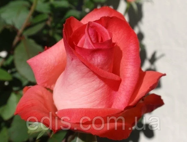 Саджанці чайно-гібридних троянд Рафаелла (Raffaella) Даний сорт має бутон насиченого коралового кольору, а внутрішні пелюстки ― ніжного кремового відтінку. Високий бутон має келихоподібну форму. Витончену форму бутон зберігає до повного занепаду. Діаметр розкритої квітки становить близько 10-12 сантиметрів. У зрізку Рафаелла здатна стояти максимум 12 днів. Матовий темно-зелене листя троянди потребує регулярному обприскуванні ― так вона буде просочуватися вологою. Якщо правильно доглядати за трояндами Рафаелла, вони по довжині будуть досягати 60-80 сантиметрів. Роза такого сорту дуже красиво виглядає в букеті.