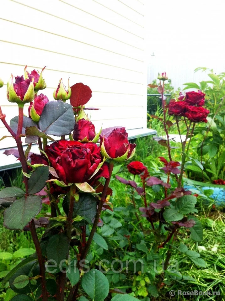 Саджанці чайно-гібридних троянд Ред Наомі (Red Naomi) Один з найпопулярніших срезочных сортів, а також завоював серця садівників-любителів завдяки красивому, багатому кольором і рясності цвітіння. Бутон темно-вишневый с чёрным напылением. Цветки гармоничной классической бокаловидной формы, густо-махровые (до 75 лепестков), очень крупные (в роспуске достигают до 18 см.!). При посадке в полутени цвет будет более тёмным. Срезка этого сорта достаточно долго сохраняет свежесть — 10-14 дней. Еще один немаловажный плюс: в летний(жаркий) период не мельчают бутоны. Роза обладает постоянным обильным цветением. Ещё одно из достоинств Рэд Наоми — хорошо ощутимый приятный сладкий аромат, что достаточно редко встречается у срезочных роз. На стеблі квітки з'являються частіше по одному, рідко до 3 штук в кистях. Висота куща: до 130 див. Пагони слабо-колючі. Листя темно-зелені, матові.