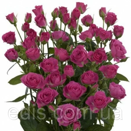 Саджанці троянди Спрей Бузкова Квітки махрові, глибоко бузкового кольору. Від 27 до 40 пелюсток. З'являються у великих китицях, чашовидні. Цвіте протягом усього сезону. Кущ майже або зовсім без шипів. Листя середня, напів-глянцевий, темно-зелена. Висота куща від 55 до 85см. Ширина від 90 до 110. Може бути використаний для бордюрів, контейнерів, зрізання. Період цвітіння ― з кінця червня до перших заморозків, поступове протягом усього сезону, рясне.