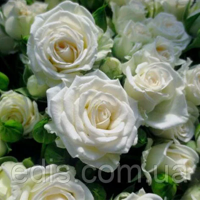 Квітки білі з молочним відтінком, дрібні, численні. Цвіте протягом усього сезону. Запах слабкий, духм'яний. Хороша стійкість до хвороб. Морозостійка.
