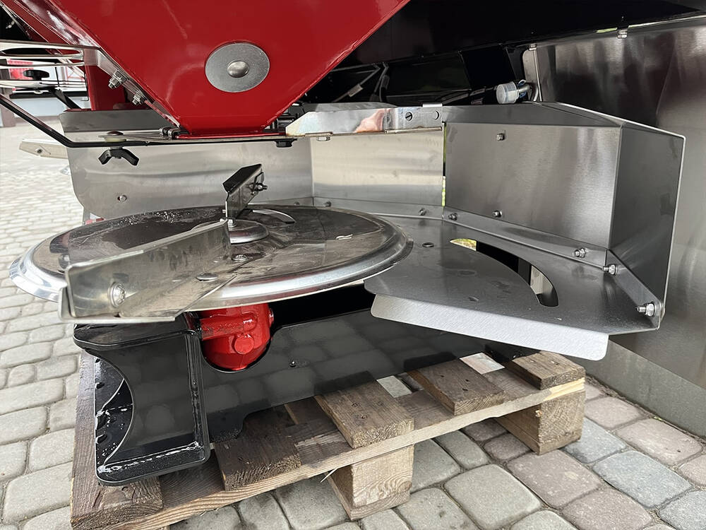 Бункер оснащений захисними ґратами, які запобігають попаданню сторонніх предметів, великих грудок. У бункері встановлені ворошилки шнекового типу, які забезпечують рівномірну подачу добрив на диски розкидача