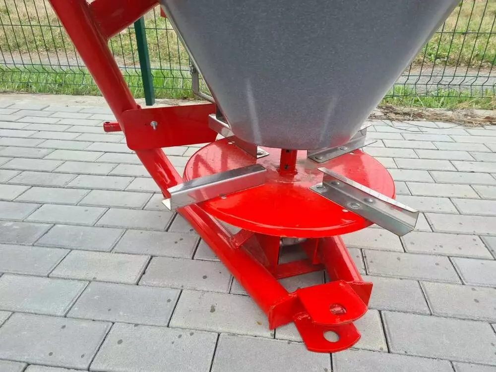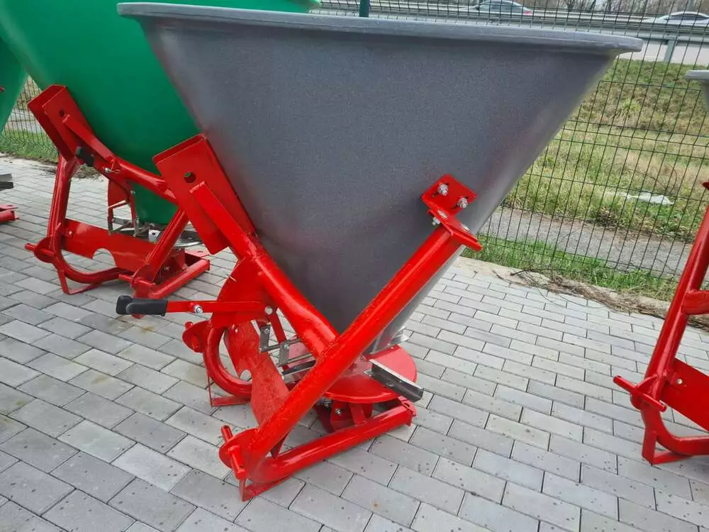 Розкидач мінеральних добрив (Польща) тракторний навісний застосовується для поверхневого внесення мінеральних добрив в гранульованому вигляді, а також для посіву зернових культур і підживлення в період вегетації, що впливає на врожайність. Завантаження машини проводиться у польових умовах. Доза внесення добрив залежить від регулювання механізму керування дозуючими заслінками і робочої швидкості руху