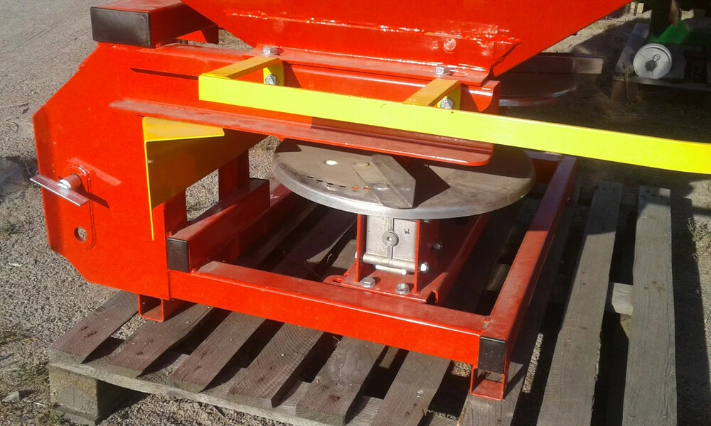 Разбрасыватель удобрений Jar- Met 1000л предназначен для поверхностного внесения гранулированных и пылевидных удобрений на возделываемых полях, лугах, стернях и пастбищах. Для крепления этих машин используется трехточечная система гидравлического подъёмника трактора. Агрегатируется к тракторам МТЗ 80, МТЗ 82, ЮМЗ. Бункер стальной.