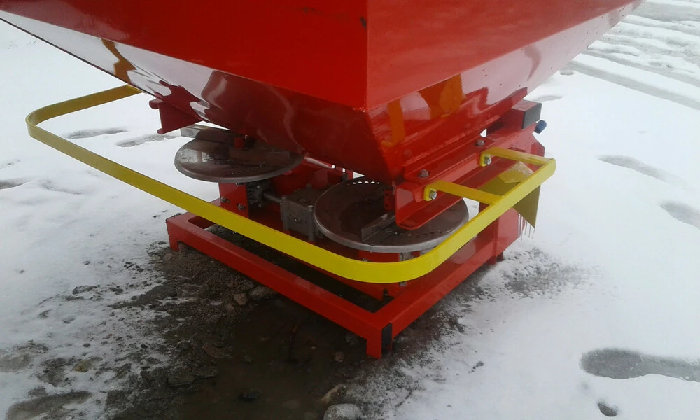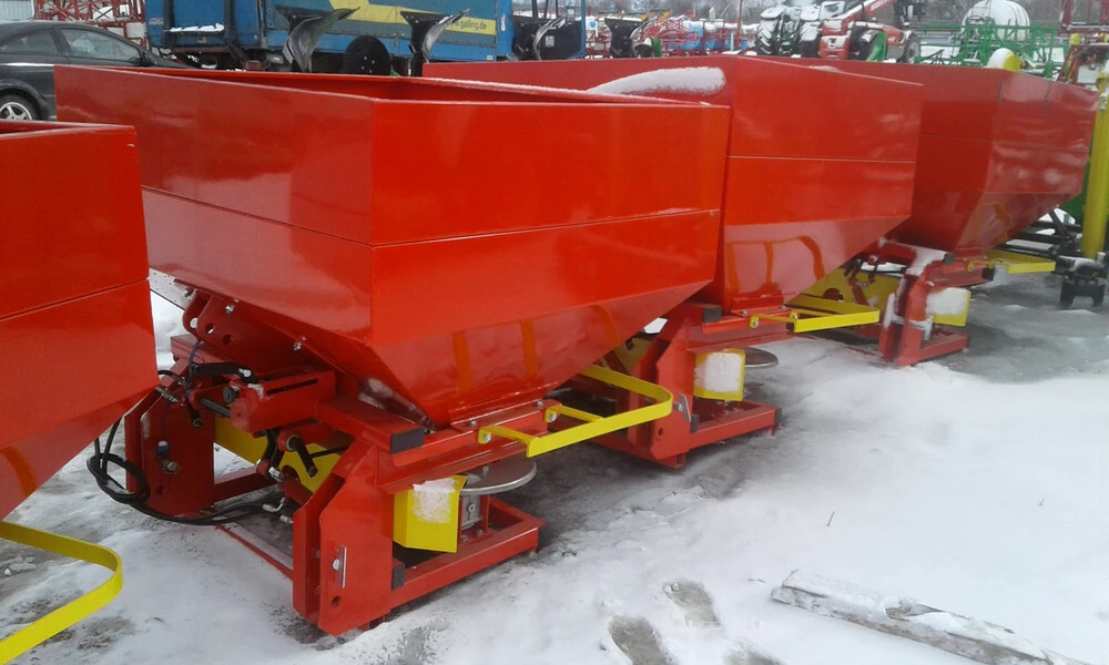 Розкидувач добрив Jar - Met 1000л призначений для поверхневого внесення гранульованих і пилоподібних добрив на оброблюваних полях, луках, стернях та пасовищах. Для кріплення цих машин використовується триточкова система гідравлічного підйомника трактора. Агрегатується до тракторів МТЗ 80, МТЗ-82, ЮМЗ. Бункер сталевий.
