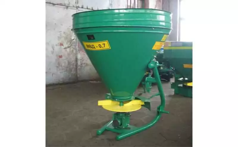 Розкидач мінеральних добрив МВД-0,7 – надійний, працездатний, зручний у використанні. Відрізняється ефективним в роботі конструктивним рішенням.