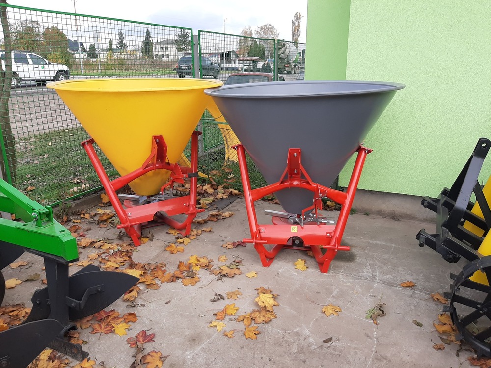Розкидач міндобрив має раму приспособлену для зєднання з трьохточковою системою підвісу трактора. На рамі закріплений резервуар в формі конуса, виготовлений з спеціального пластику або з металу. Дозування добрив відбувається через два отвори, що знаходяться на дні резервуара. В передній частині резервуара знаходиться механізм, який регулює дози добрив, що вносяться. Механізм складається з двох ричагів та затворів які закривають засипочні отвори. Внесення добрив відбувається через диск з чотирьма лопатками. Диск приводиться в рух через редуктор до якого підєднується карданно-телескопічний вал. Змішування міндобрив в середині резервуара відбувається за допомогою мішалки, що приводиться в дію також за допомогою редуктора. Диск який обертається з центробіжною силою розкидає добрива, що поступають з бункера, на поверхню поля.