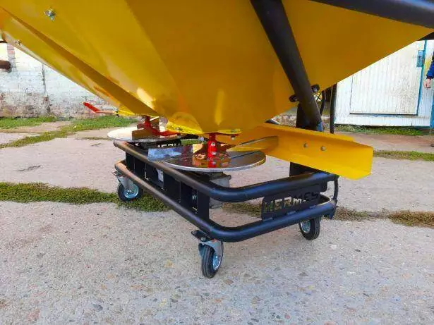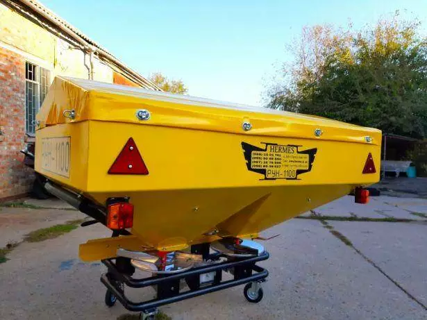Цей розкидач призначений для поверхневого внесення твердих мінеральних добрив у гранульованому та кристалічному вигляді з подальшим закладенням їх ґрунтооброблювальними гарматами, а також для підживлення зернових і пропашних культур, лугів і пагонів. Габарити та продуктивність машини передбачають роботу як у полі, так і в садах. забарвлений антикорозійною нітро-фарбою. Тарілка розкидача виготовлена з неіржавкої сталі.