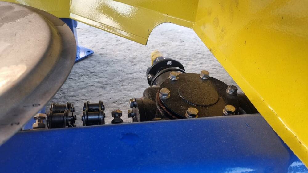 - Геометричні параметри і місце розташування бункера дозволяють максимально наблизити центр маси розкидача до задньої частини осі трактора, що дозволяє перерозподілити навантаження між його задніми і передніми колесами;