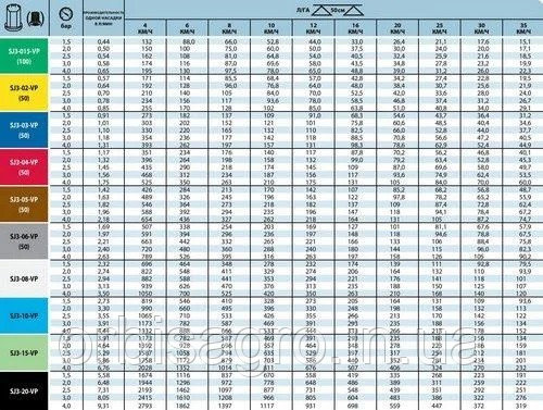 • Коефіцієнти перерахунку для визначення щільності подачі рідини