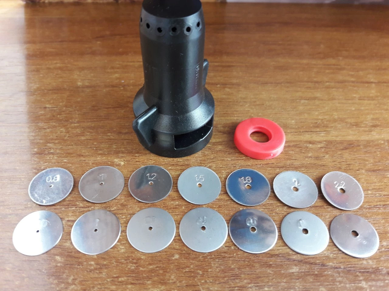 У комплекті до розпилювача йде дозуюча шайба на будь-яку норму внесення 0,8; 1,0; 1,2; 1,5; 1,8; 2,0; 2,5 і гумова прокладка (норму внесення можна подивитися на фото нижче)
