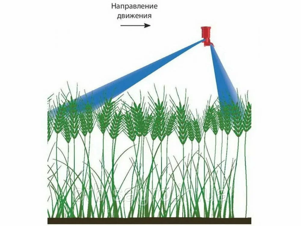 покров культуры, в то время как струя, наклоненная на 70° назад, увеличивает