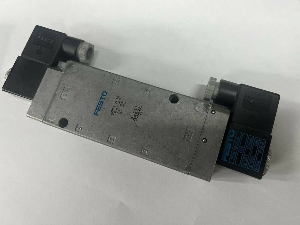 Пневморозподільник Festo JMFH-5-1/4 з приєднувальною різзю G1/4, тип 5/2 бістабільний — п'ятилінійний двопозиційний з двостороннім електромагнітним керуванням (котушки та штекери замовляються окремо) призначений для перемикання потоків стисненого повітря до різних виконавчих механізмам пневматичних систем.