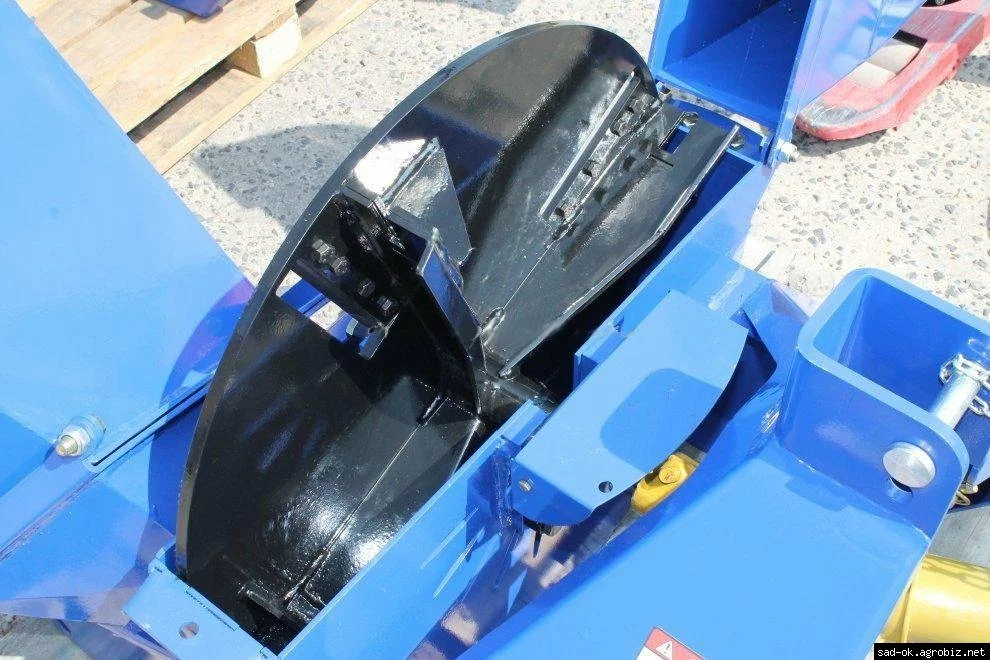 Полученная щепа выбрасывается через трубу которая вращаться на
