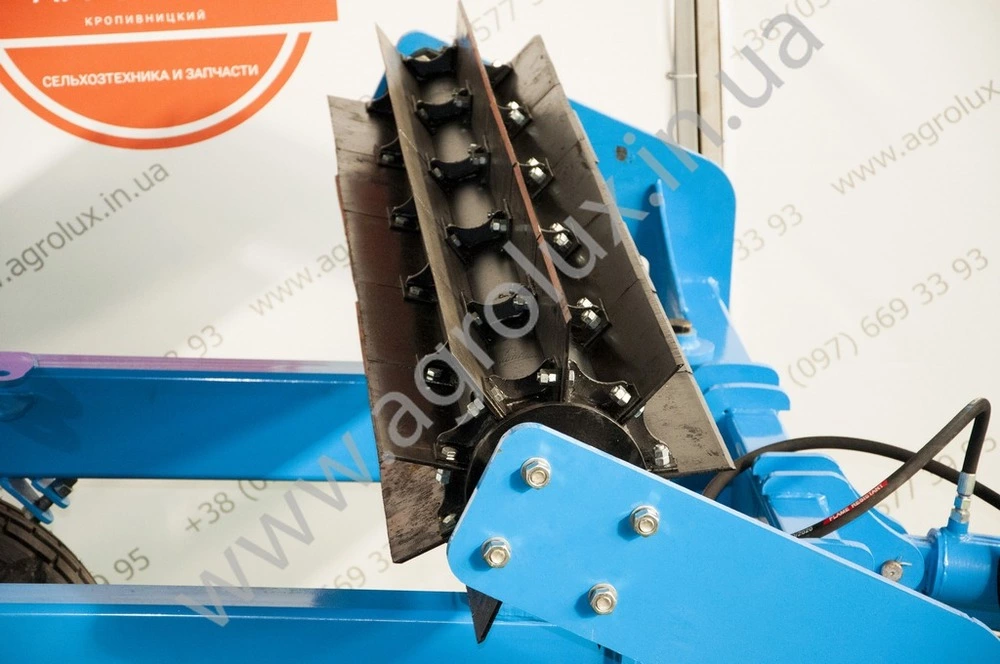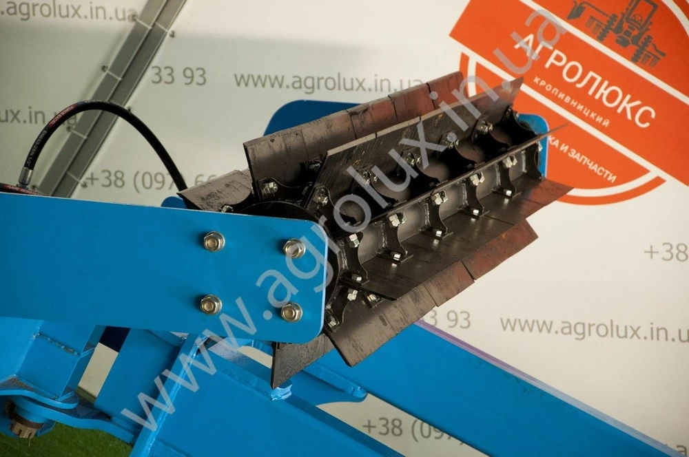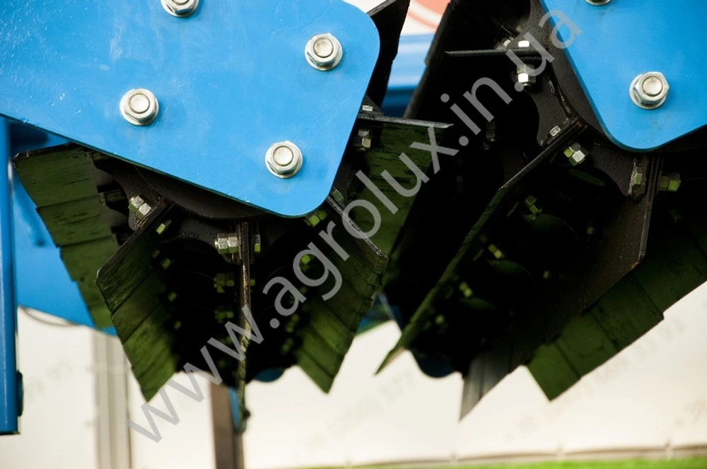 Подрібнювач має три робочі органи (катки), які закріплені на шарнірній рамі. Кожен робочий орган закріплюється на індивідуальній секції рами.
