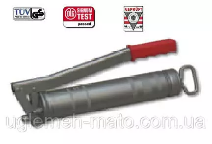 Для використовування з запвнюванням (втягуванням) мастила з бочки вручну або за допомогою заправного насоса або зі стандартними 400 грамовими картриджами. 0,8 г/ход (NLGI -2). Макс. 40 МПа (400 бар). На ручному пресі встановлений повітряний клапан, для стравлювання повітря, та для закачування мастила за допомогою насоса. Поставляється без приладдя.