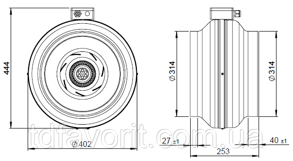 Типоразмеры от 100 до 315 мм. Производительность до 1760 м3/ч
