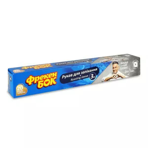 Рукав для запікання Фрекен Бок, 3 м. Рукав для запікання Фрекен БОК – спеціальний тракторний шов для виходу пари, оснащений стрічкою-зав'язкою та додатково кліпсами для духової шафи. Завдяки наявності тракторного шва легко розкрити рукав у процесі приготування для отримання рум'яної скоринки. У разі використання рукава не потрібно додавати жири. Страви готуються у власному соку. Рукав зберігає цінні вітаміни та мікроелементи у приготованих стравах. Після використання рукава не потрібно мити посуд та деко. В упаковці 12 паперових кліпс, призначені для використання в духовці. Не використовуйте кліпси для приготування в мікрохвильовій печі. Стрічка-зав'язка, що знаходиться в рукаві, призначена як для використання у НВЧ-печах, так і в духових шафах.