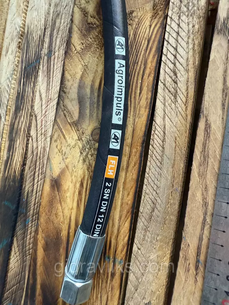 Гідравлічний рукав високого тиску 2SN DN12 довжиною 1,5 м з фітингом г.24 Євро. Виготовлений за європейським стандартом, витримує робочий тиск до 275 бар та розривний до 1100 бар.