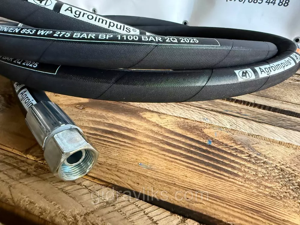 Гідравлічний рукав високого тиску 2SN DN12 з європейським стандартом якості. Витримує робочий тиск до 275 бар та максимальний тиск розриву 1100 бар. Довжина рукава — 3,5 м, фітинг — г.24.