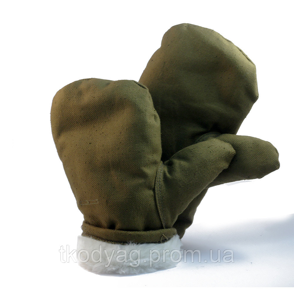 Верх рукавиц выполнен из плотной диагонали защитного цвета