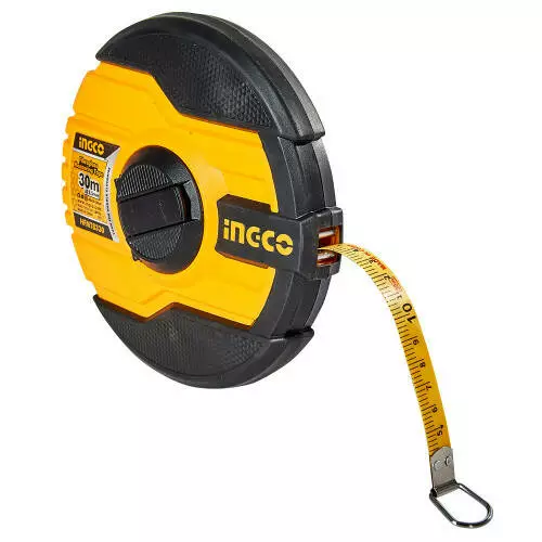 Рулетка INGCO на 30 метрів зі скловолокнистою стрічкою – це надійний інструмент для вимірювань, який підходить для використання в будівництві, ремонті та інших сферах. Стрічка шириною 12,5 мм виконана з міцного скловолокна, що забезпечує її високу точність та довговічність. Завдяки скловолокнистому матеріалу, рулетка має високу стійкість до розтягування та деформації, що гарантує стабільні результати вимірювань протягом тривалого часу.