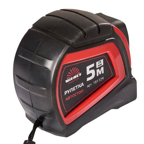 Особливості рулетки 5 м × 25 мм автостоп Vitals Master: