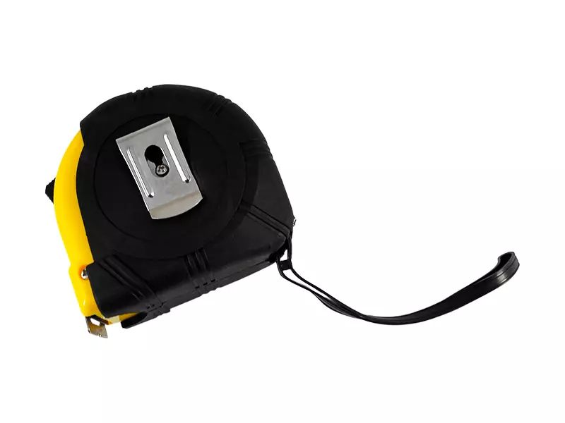 Автоматичний механізм змотування дозволяє швидко та плавно складати стрічку назад у корпус, а кнопка фіксації надійно утримує її у вибраному положенні, що значно спрощує процес вимірювання та забезпечує додаткову зручність.