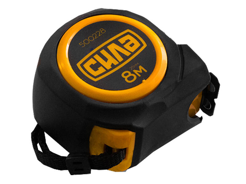 Прогумований корпус захищає інструмент від ударів і пошкоджень, гарантуючи йому довговічність і стійкість до агресивних зовнішніх факторів. Ширина стрічки 25 мм забезпечує стабільність і точність вимірювань навіть на великих відстанях. Механізм автостопа дозволяє зафіксувати стрічку на потрібній довжині, що підвищує зручність роботи.