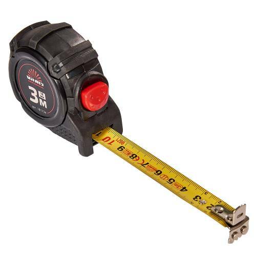 - **Довжина і ширина**: Рулетка має довжину 3 метри і ширину стрічки 16 мм, що робить її ідеальним інструментом для вимірювання в умовах обмеженого простору.