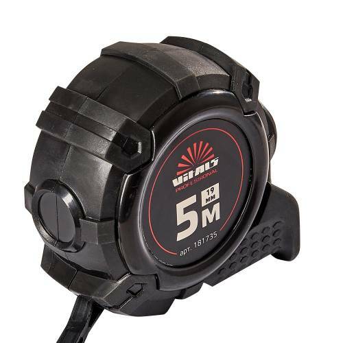 **Рулетка гумова з нейлоновим покриттям полотна 5 м × 19 мм автостоп Vitals Professional** - це надійний інструмент для вимірювання довжини під час будівельних та ремонтних робіт. Основні характеристики цієї рулетки: