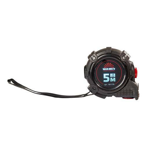 - **Довжина і ширина**: Рулетка має довжину 5 метрів і ширину стрічки 19 мм, що робить її ідеальним інструментом для вимірювання на середніх ділянках.