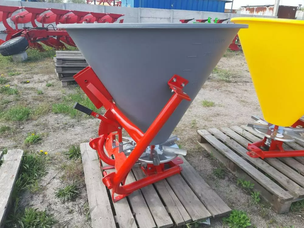 Розкидач мінеральних добрив (Польща) тракторний навісний застосовується для поверхневого внесення мінеральних добрив в гранульованому вигляді, а також для посіву зернових культур і підживлення в період вегетації, що впливає на врожайність. Завантаження машини проводиться у польових умовах. Доза внесення добрив залежить від регулювання механізму керування дозуючими заслінками і робочої швидкості руху