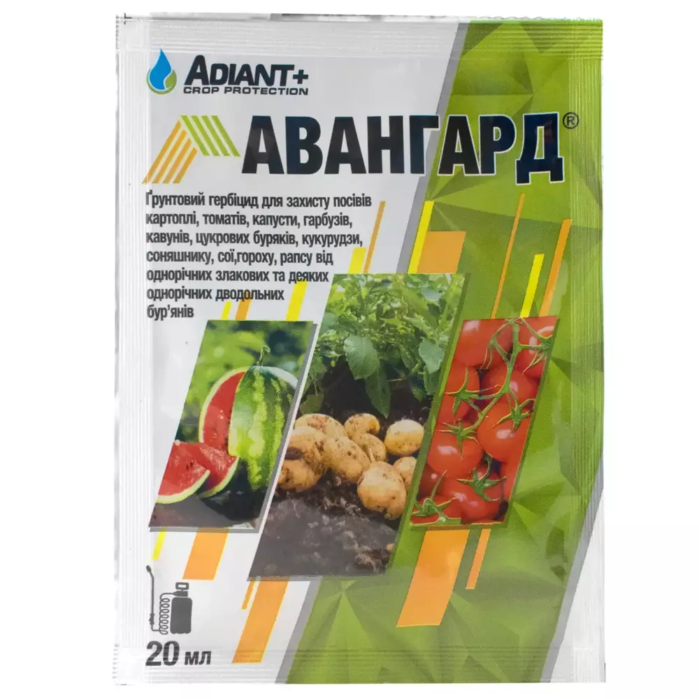 Авангард — ґрунтовий гербіцид, вибіркової дії для захисту посівів: картоплі, томатів, капусти, гарбуза, кавунів, буряків, кукурудзи, соняшнику, ріпаку, гороху від однорічних однодольних і деяких однорічних дводольних бур'янів.