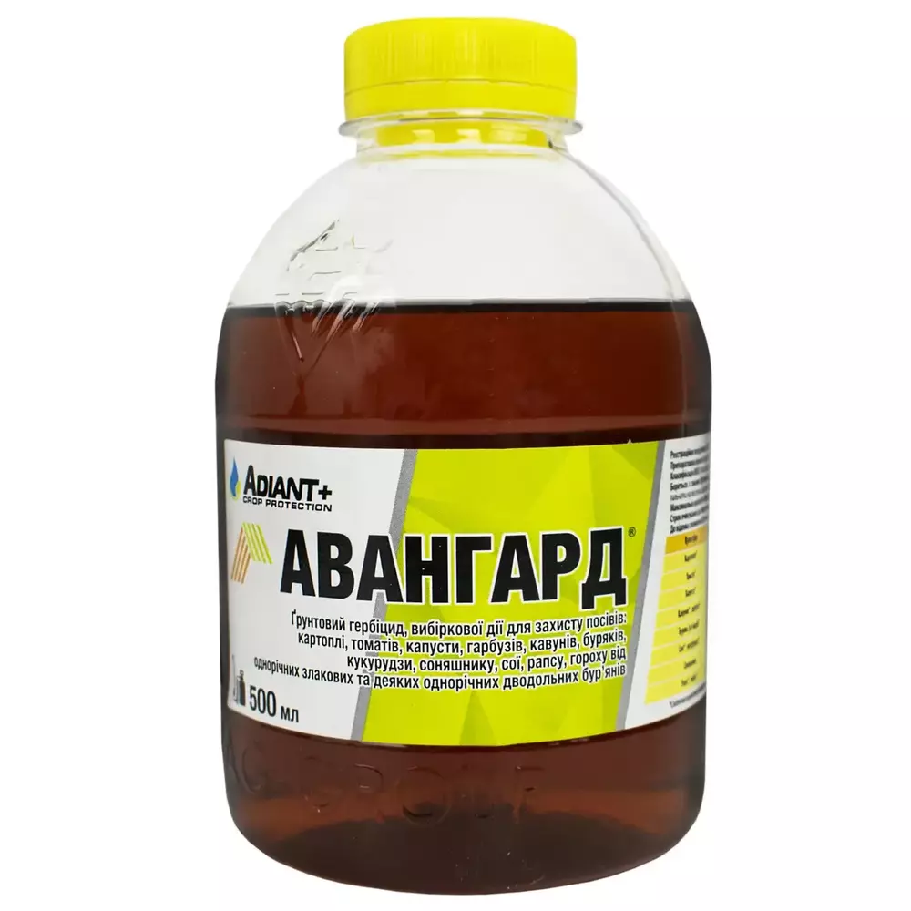 Авангард — ґрунтовий гербіцид, вибіркової дії для захисту посівів: картоплі, томатів, капусти, гарбуза, кавунів, буряків, кукурудзи, соняшнику, ріпаку, гороху від однорічних однодольних і деяких однорічних дводольних бур'янів.