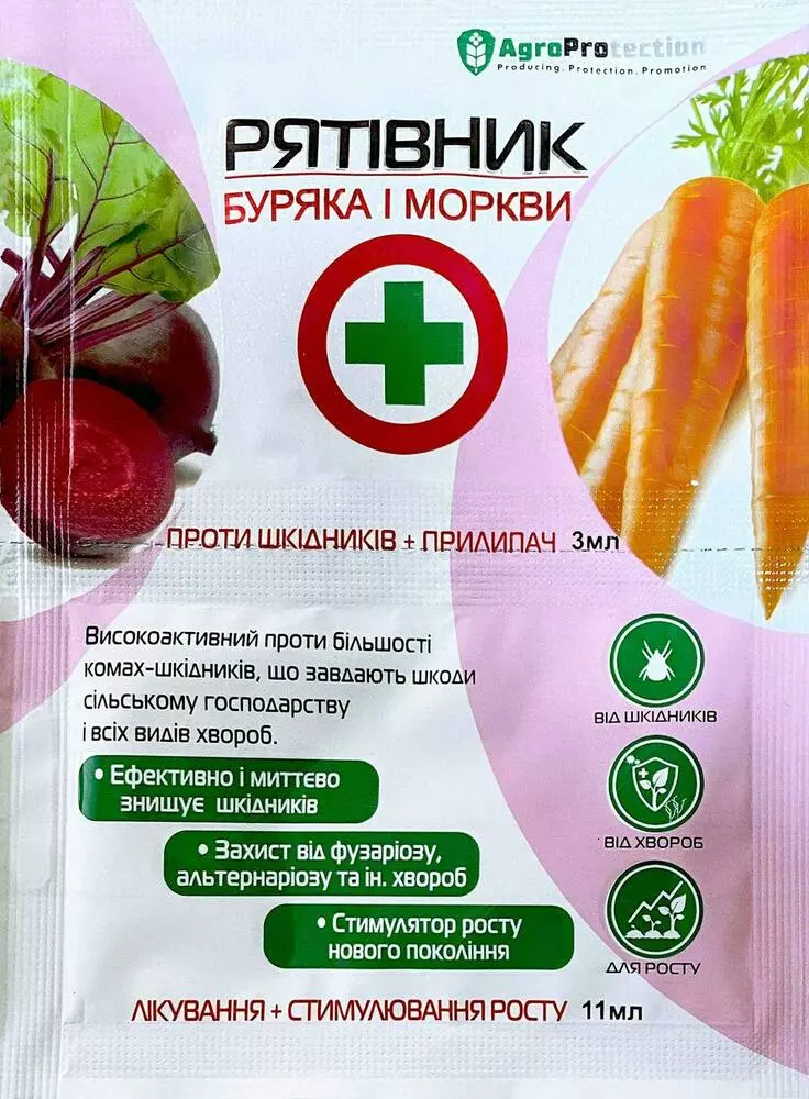 Рятівник буряка і моркви 3 мл + 11 мл — чотирьохкомпонентний комплескний засіб для захисту цибулі і часнику від переважної кількості шкідників та всіх видів патогенних організмів (хвороб).